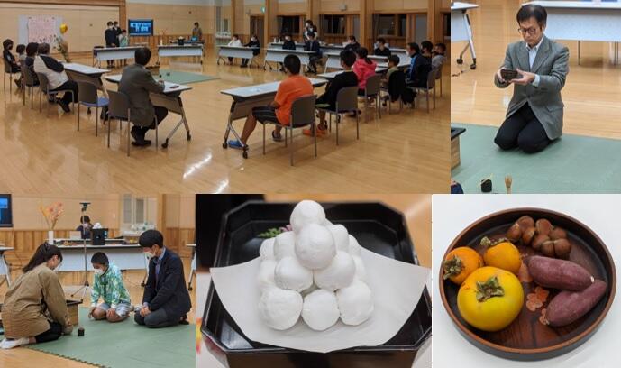 ワクチン接種副反応等の関係で3人の生徒は共同教室には来られませんでしたが、なんと…皆、自宅からリモート参加をしてくれました。舎生の皆さん、そして先生方の周到な準備や配慮で、和やかでアットホームな「お月見会」となりました。