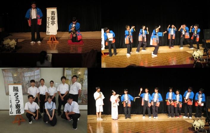 令和元年(2019年)8月11日(日)熊本国際交流会館 常連となった熊ろう手話落語部。今回は部長椎葉健太郎君の小噺「床屋」と中高7人による「大喜利」を披露しました。小噺には総文祭で読み取り通訳を担当した第二高校放送部牛島史織さんも快く助っ人を買って出てくれ、コミカルな「大喜利」とあわせて会場を沸かせました。「ナキワラ」都道府県ライブは、地域の中高生が、「パフォーマンス部門」「音楽部門」「主張部門」「スタッフ」と出演や運営を手掛ける手作りのライブです。九州大会進出はなりませんでしたが、楽しい一日を過ごすことができました。