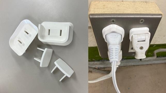 本校では補聴器の水滴を飛ばすときに使うエアダスターがコンセント掃除の時に威力を発揮しています。