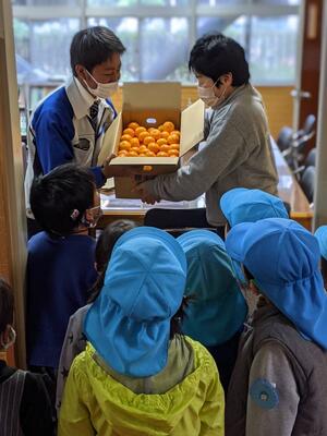 幼稚部の子供たちは「お兄ちゃん、お姉ちゃんたち、何を持ってきてくれたんだろう‥⁉」という表情を浮かべ興味津々の様子でした。