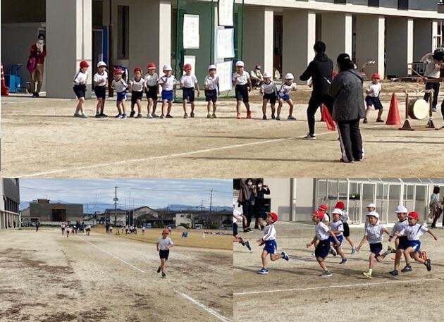 「かけっこ」では、強い競争意識はまだまだ芽生えてはいないようですが、どの子もゴール目指し、途中立ち止まることなく走り抜けていきました。