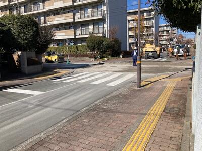 本校正門前に可搬式ハンプ(スムーズ横断歩道)が設置されました。これは車側からすれば段差のある横断歩道で、設置により自動車の走行速度の軽減がどの程度図れるかという実証実験のための仮設のものです。11月16日(火)までの約1カ月間設置されます。