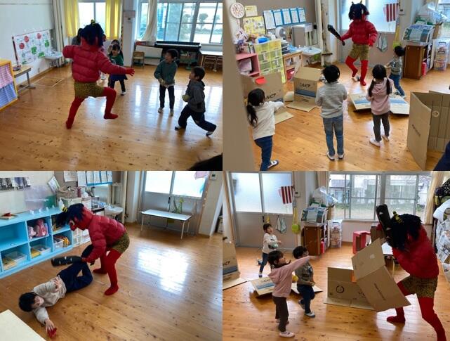 「動物園見学」の翌日、子供たちは「さるのおうちをつくるよ~」と言って、段ボール調達に奔走していました。