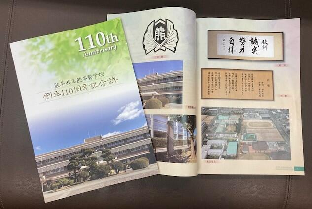 過日、本校初代校長の安藤丑熊(あんどうしぐま)氏の御子孫でいらっしゃる市川様が御夫妻で来校されました。そこで、盲学校と本校がそれぞれに制作した「創立110周年記念誌」を、盲学校の校長先生と一緒に、直接お渡しすることが出来ました。