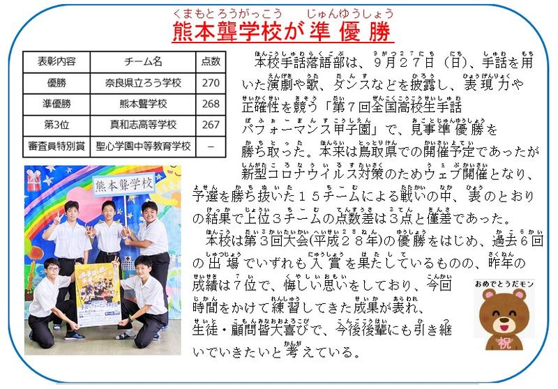 全国高校生手話パフォーマンス甲子園、準優勝!