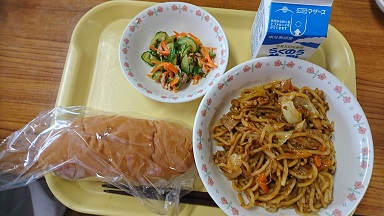 「コッペパン、牛乳、ソースやきそば、ツナサラダ」
