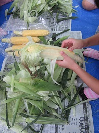 とうもろこしの皮は、小学部の1・2年生にむいてもらいました。