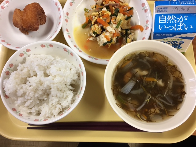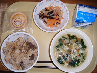 鉄分、カルシウムが多いひじきごはんでした。成長期に必要な栄養です。