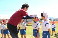 輪投げと、幼稚部の子供たちが好きな「鬼滅の刃」の衣装、そして新型コロナウイルス感染症の終息を願ったお守りを貰い、子供たちも嬉しそうでした。