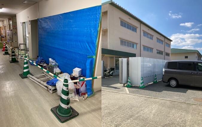管理棟の廊下の幅を狭くしていた仮囲いが外され、トイレ工事の終了が見えてきました。新調されたトイレは12月末からは使用できる予定です。