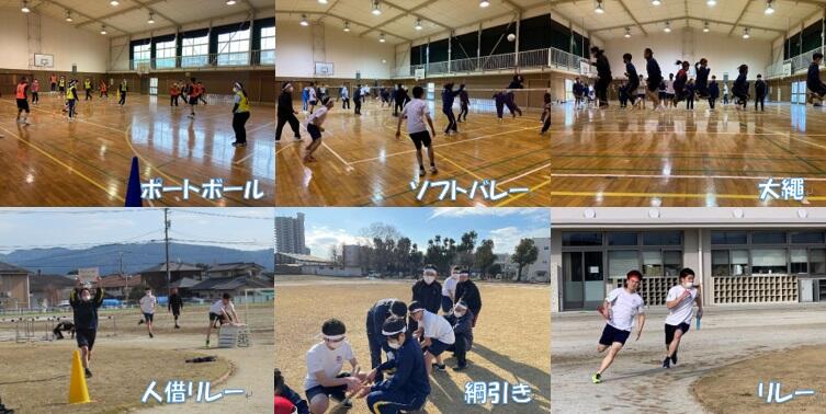 午前の部では、ポートボール、ソフトバレー、人借り競争、午後の部では大縄跳び、綱引き・リレー、と全員が楽しめる競技を生徒会執行部が考えてくれました。お陰で、生徒・職員の歓声が飛び交う催しとなり、終始盛り上がりました。