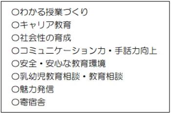本校職員が学校の課題として捉えている事柄をカテゴライズし、絞り込んだ8項目は以下の項目です。