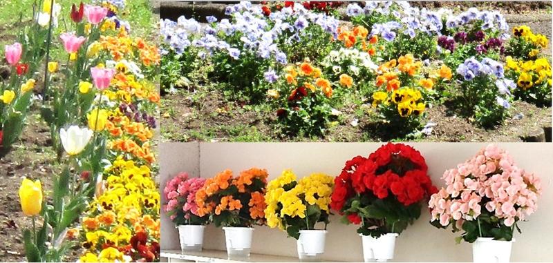 学校再開後には、苗が少し大きくなっていることでしょう。綺麗に咲いたときは色とりどりに咲き誇り、華やかになると思います。どうぞ楽しみにしていてください。他にもチューリップやパンジー、ベゴニアなどが今満開です。せっかくなので、このホームページの写真でおすそ分けします。