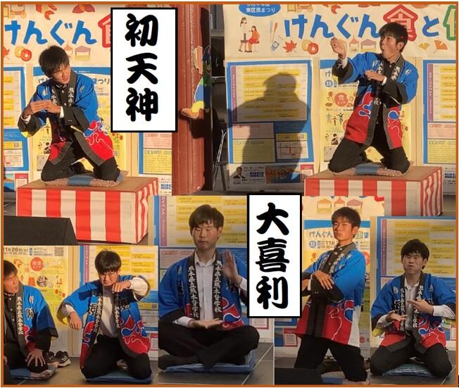 2年生が2人、ピアクレス(健軍商店街)アーケードで行われたステージイベントに出演し、小噺「初天神」、大喜利を披露しました。