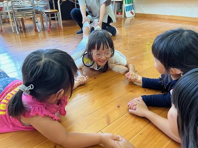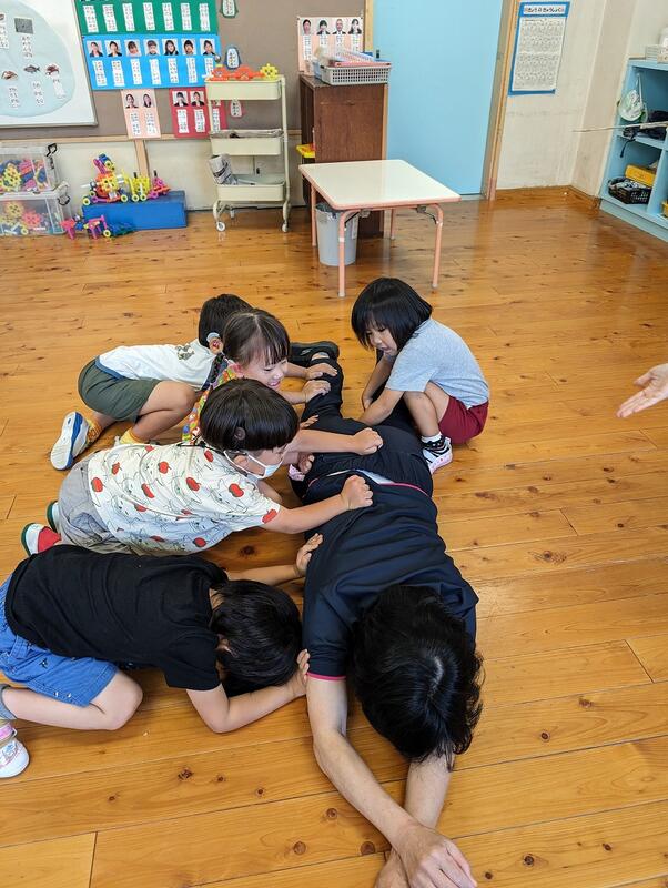 それぞれのチームで、年下のお友達を手伝おうとしたり、同級生のお友達がお世話するところを真似たりする様子がありました。
