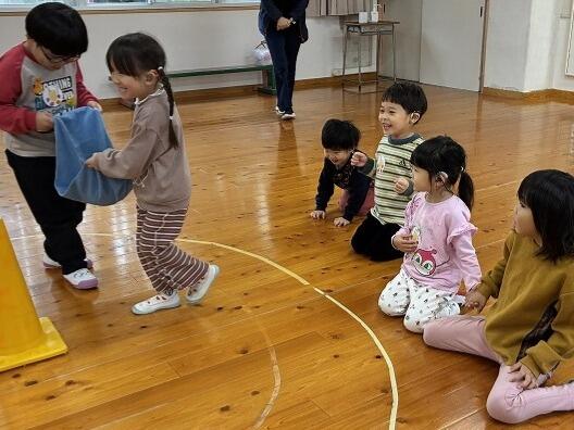 年下の子のお世話をしたり、年上の子の真似をして自分でやってみようとしたりする姿が見られ、異年齢の友達と関わりながら楽しく過ごすことができました。