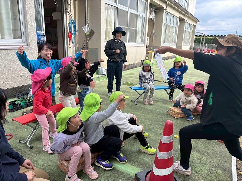 子供たちが話し合い、チーム名を「ひこうきチーム」と「くだものじゅーすチーム」に決めました。この2チームに分かれて3日間活動をしました。