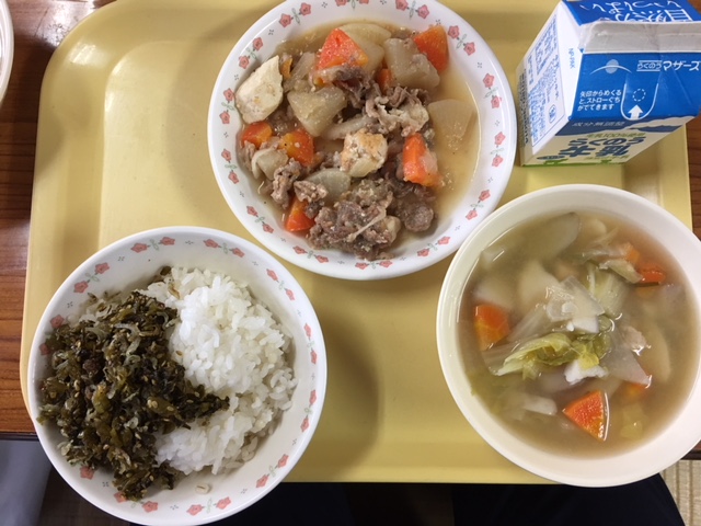 平成29年12月4日 今日の給食 投稿日時 : 2017/12/06 寄・厨 今日の給食は「麦ごはん 牛乳 だご汁 豚肉とだいこんのみそ炒め 手作り高菜ふりかけ」でした。冬野菜のだいこん、白菜、にんじんなどが入ったメニューでした☆ Tweet {{options.likeCount}} {{options.likeCount}} 0 コメント