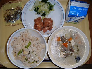 平成28年5月19日(木)今日の給食 投稿日時 : 2016/05/19 寄・厨 今日の給食は「牛乳、たけのこごはん、みそけんちん汁、鶏肉の照り焼き、いりこ」でした。 Tweet {{options.likeCount}} {{options.likeCount}} 0 コメント