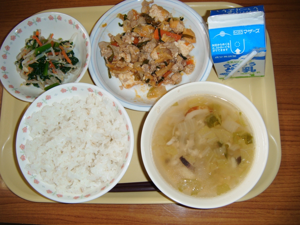 平成28年3月11日(金)今日の給食 投稿日時 : 2016/03/11 寄・厨 今日の給食は「牛乳、麦ごはん、中華スープ、豚キムチ、もやしナムル」でした。 Tweet {{options.likeCount}} {{options.likeCount}} 0 コメント