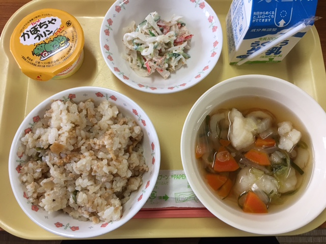平成28年11月9日今日の給食 投稿日時 : 2016/11/09 寄・厨 今日の給食は「こぎつねごはん 牛乳 だいこんサラダ つみれ汁 かぼちゃプリン」でした。きつねの好きな食べ物の、油揚げが入った混ぜご飯でした! Tweet {{options.likeCount}} {{options.likeCount}} 0 コメント