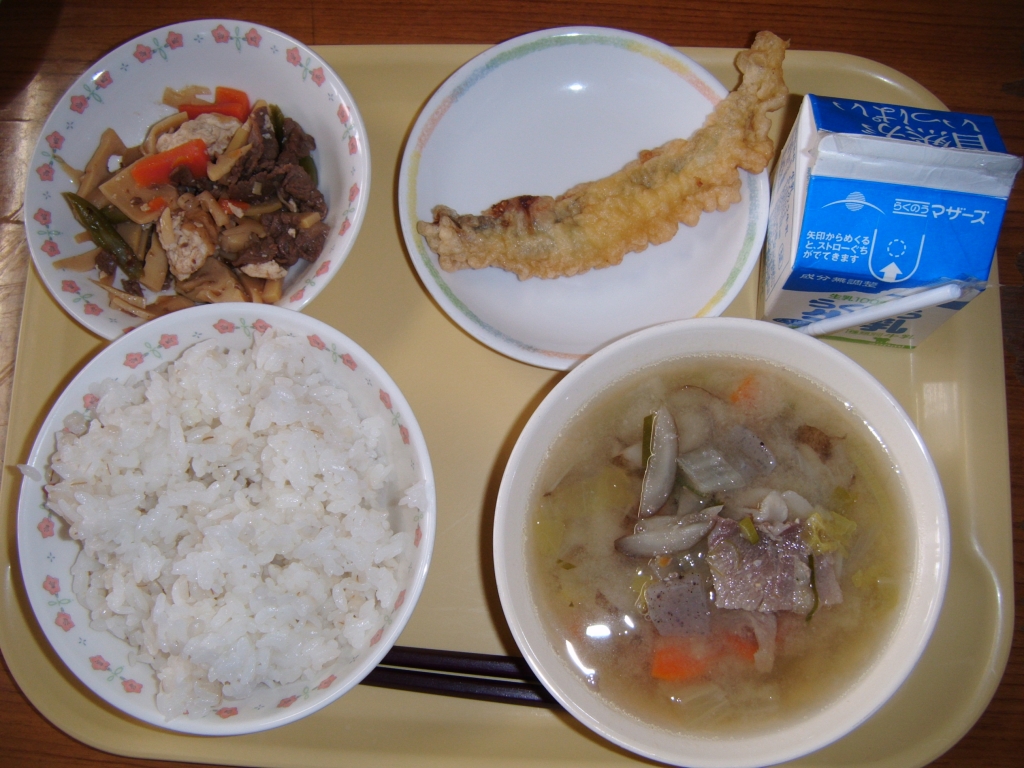 平成28年3月7日(月)今日の給食 投稿日時 : 2016/03/07 寄・厨 今日の給食は「牛乳、麦ごはん、豚汁、ししゃも天ぷら、厚揚げのうま煮」でした。 Tweet {{options.likeCount}} {{options.likeCount}} 0 コメント