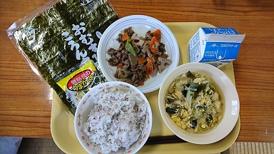 平成30年4月16日 今日の給食 投稿日時 : 2018/04/16 寄・厨 今日の給食は「ゆかりおにぎり、牛乳、乾物スープ、牛肉とれんこんの甘辛炒め、ミックスナッツ」でした。 Tweet {{options.likeCount}} {{options.likeCount}} 0 コメント