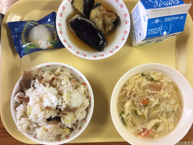平成29年10月4日 今日の給食 投稿日時 : 2017/10/04 寄・厨 今日はお月見の行事食です。メニューは、「秋味ごはん 牛乳 かきたま汁 揚げ出しなす お月見団子」でした。今晩は丸いお月さんを眺められるといいですね。 Tweet {{options.likeCount}} {{options.likeCount}} 0 コメント