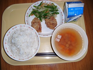 平成28年7月11日(月)今日の給食 投稿日時 : 2016/07/11 寄・厨 今日の給食は「牛乳、麦ごはん、冬瓜のスープ、塩からあげ、ごま酢和え」でした。 Tweet {{options.likeCount}} {{options.likeCount}} 0 コメント