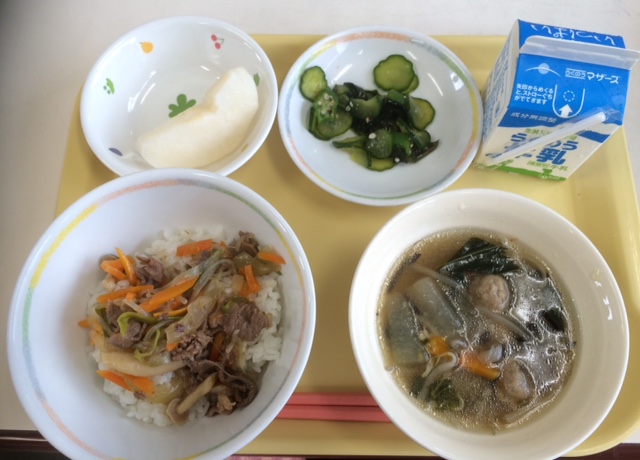 9月2日 投稿日時 : 2015/09/02 寄・厨 今日の給食は「牛丼 牛乳 わかめとオクラの和え物 冬瓜と肉団子のスープ 梨」でした。旬の熊本県産の梨を使いました Tweet {{options.likeCount}} {{options.likeCount}} 0 コメント