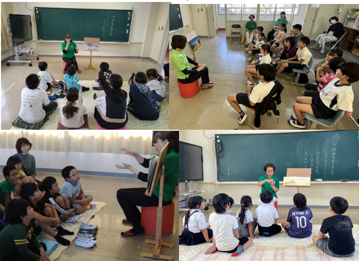 今年度も「てとてとてんとうむし」さんに絵本の読みきかせをしていただきました。子供たちは、豊かな手話表現に興味津々で、物語の世界に引き込まれていました。読みきかせに集中するあまり、徐々に絵本の前まで近づいていったり、途中で読んでいる方に質問したり話しかけたりする児童も・・・。
