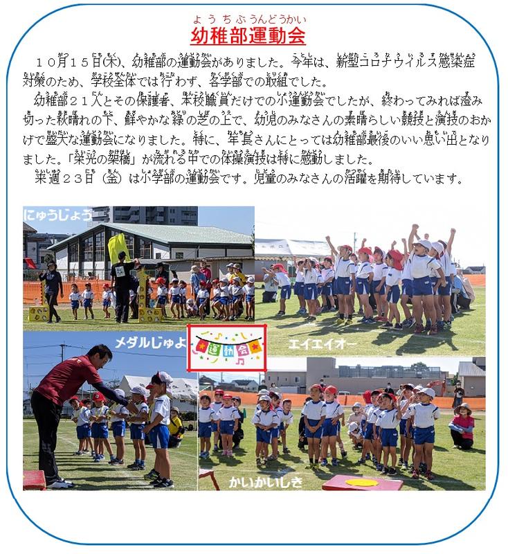 幼稚部運動会(10月15日) 投稿日時 : 2020/10/22 学校サイト管理者 Tweet {{options.likeCount}} {{options.likeCount}} {{options.unlikeCount}} {{options.unlikeCount}} 0 コメント