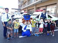 熊本東警察署で、パトカーに乗ったり、お巡りさんの持ち物を見せてもらったり、子供たちは大喜びでした。