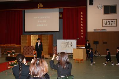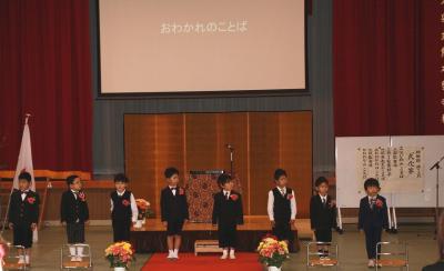 保護者さんや幼稚部の先生達に見守られながら、温かい雰囲気の中、緑組の8人が幼稚部を巣立っていきました。