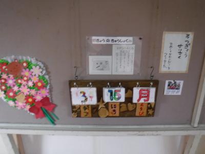 緑組の卒業制作「日めくりカレンダー」です。うさぎルーム前の壁面に掛けています。