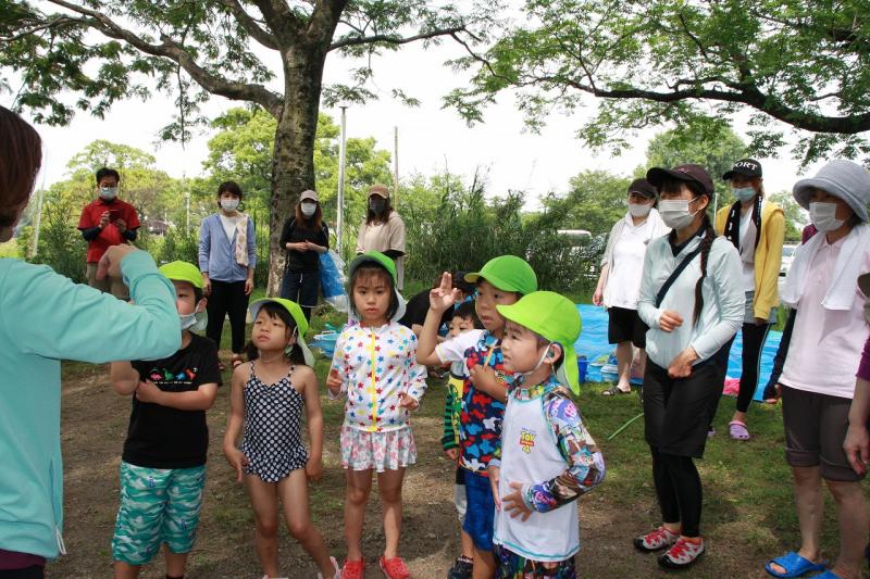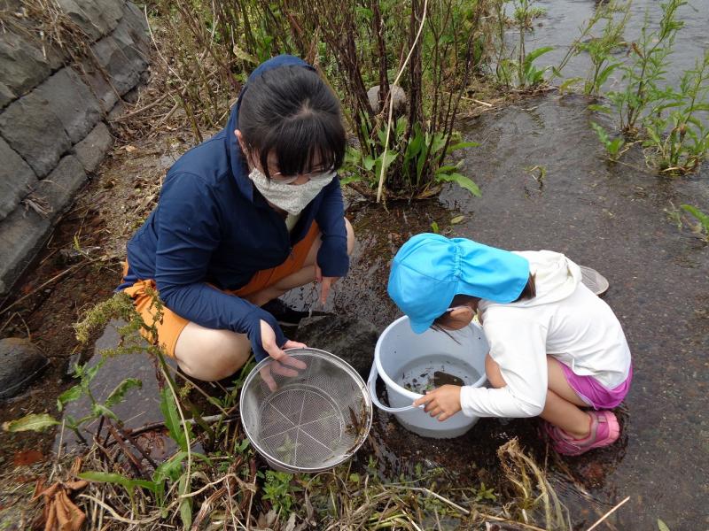 初めて江津湖に入る子供も、普段よく保護者と一緒に遊びに来ている子供もいるようでした。