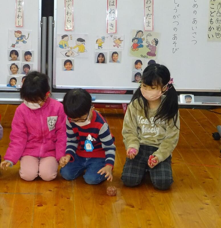 「あけましておめでとうございます。今年もよろしくお願いします。」と新年の挨拶をして、正月遊びを楽しみました。
