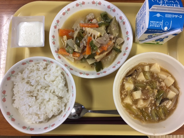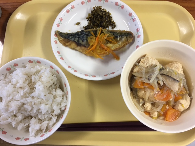 「麦ごはん 牛乳 肉団子スープ 魚のカレー南蛮 高菜のあぶら炒め」でした。