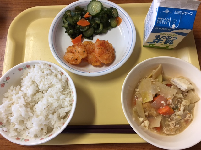 「ハヤシライス 牛乳 手作りオムレツ ねばねばサラダ」でした。