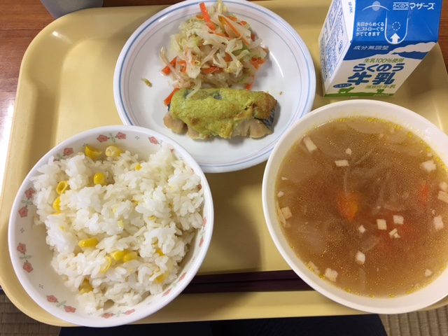 「夏やさいのチーズパン 牛乳 れたす卵スープ シュークリーム」でした。