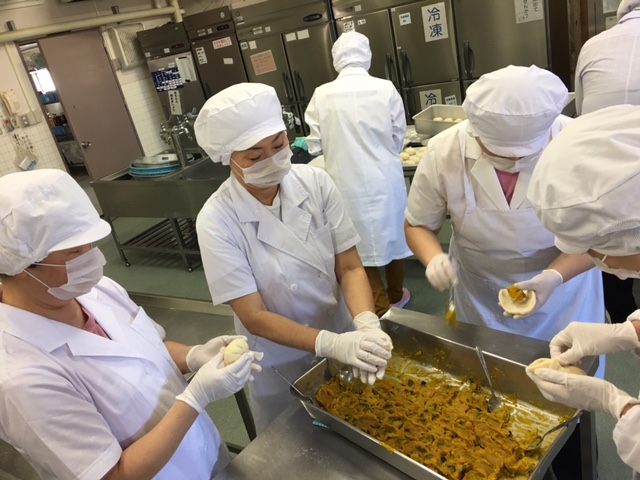 今日は「ふるさとくまさんデー」。上益城の味の文楽ごはんとかぼちゃの粉かけでした。