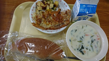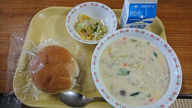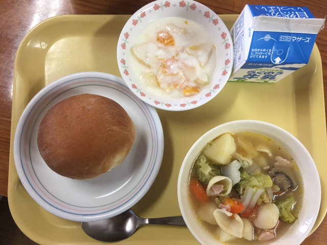 「手作りかぼちゃパン、牛乳、ポトフ、フルーツヨーグルト」でした!