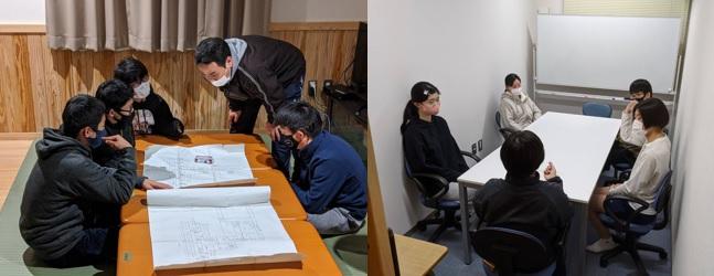 高等部3年の舎生4人は卒業後に一人暮らしすることをイメージし、地震や火災等の災害が起きた時の対応や備えておくべきことなどについて話し合いました。また、高等部2年生以下の生徒たちは寄宿舎で火災が発生した場合の初期対応や避難経路等について舎の平面図を広げながら、活発に意見を出し合っていました。
