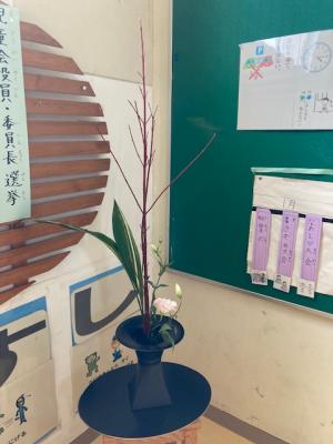 小学部の保護者様から、「子供たちに季節の花々に触れ、『和』の文化に親しんでほしいので、定期的に小学部に花を飾ってもいいですか。」との嬉しいお申し出がありました。そして今、幼小棟2階踊り場に季節の生け花(第2弾)を飾ってくださっています。