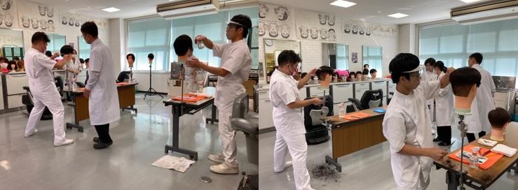 写真は一人一授業での理容科3年生「ヘアカッティング」の実習の様子です。生徒たちのカッティングの技術が確実に上がってきています。