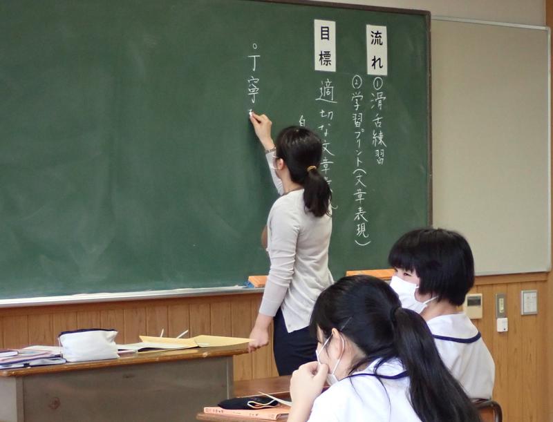 授業が行われるすべての教室に「目標」「流れ」のシートを設置しました。各教科の授業で活用し、生徒たちの学びに繋がる授業づくりをしていきます。