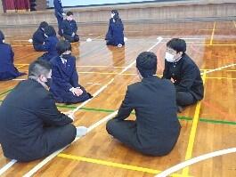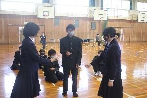 入学したばかりの1年生と親睦を深めるため、生徒会ではレクリエーションを企画しました。「最弱王と最強王を決めるじゃんけん」と「手を叩いた数で集まろうゲーム」を通し、積極的に2・3年生が1年生に話しかけている姿があり、1年生は安心して高校生活をスタートすることができました。