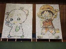 昨年に引き続き、新型コロナウイルス感染症の影響で規模を縮小して行いました。各クラスや委員会、部活動などによる発表や展示を行いました。生徒会が中心となり全校生徒に協力してもらい、キャップアートを完成することができました。準備期間から当日まで一人一人が努力し、輝く姿を見ることができました。