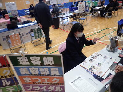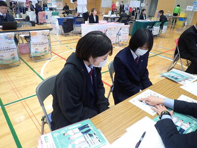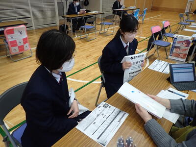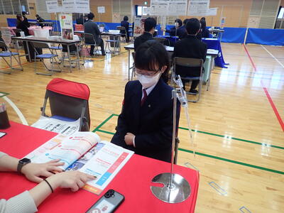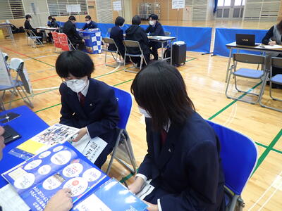 12月17日(水)、天草市民センターで開催された「進路ガイダンス」に、1年生と2年生の希望者が参加してきました。参加した生徒たちは、関心のある上級学校のブースを積極的にまわって情報を収集していました。限られた時間でしたので、「時間があっという間だった。もっと聞きたかった」という生徒もいました。みんなそれぞれに自分の進路について、真剣に考え始めているようでした。今後も、進路について主体的に考え行動し、進路実現を目指して様々なことにチャレンジしてほしいと思います。