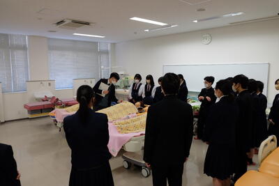 その後、病棟看護実習室と分娩実習室を見学し、説明を受けました。